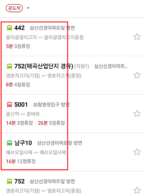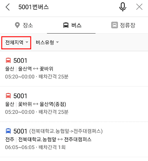 2. 버스 번호를 검색합니다.